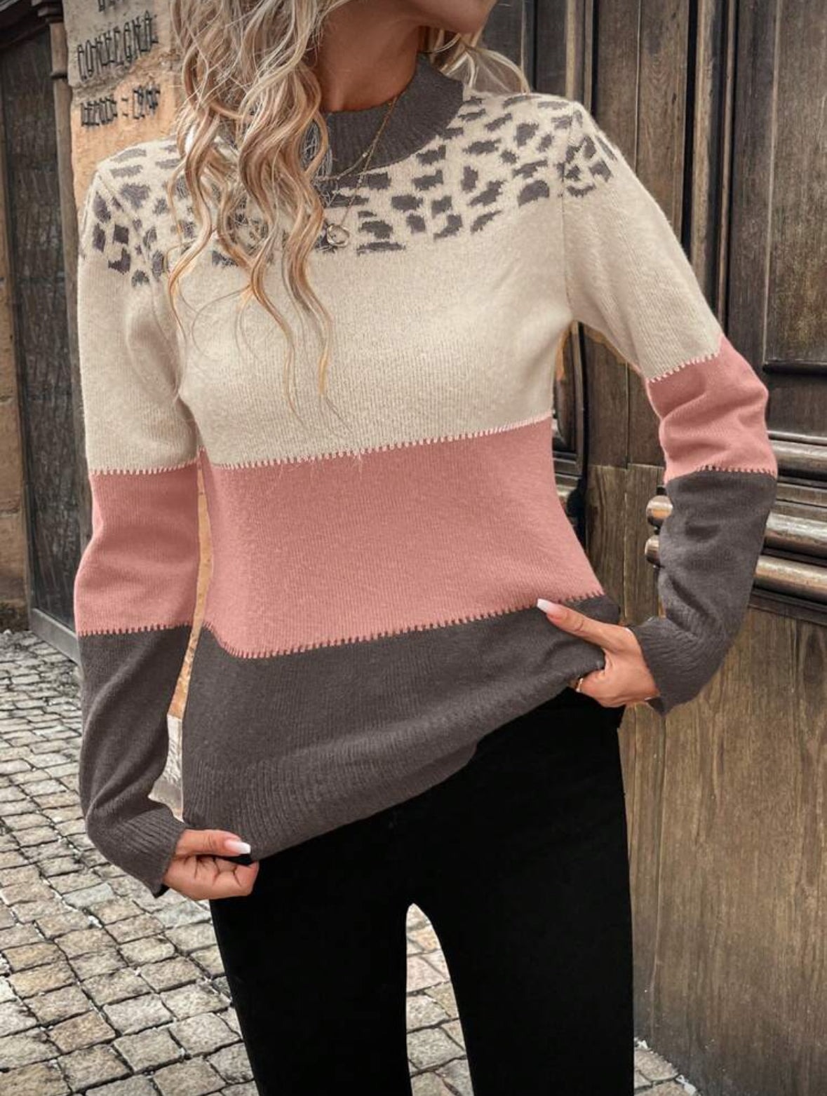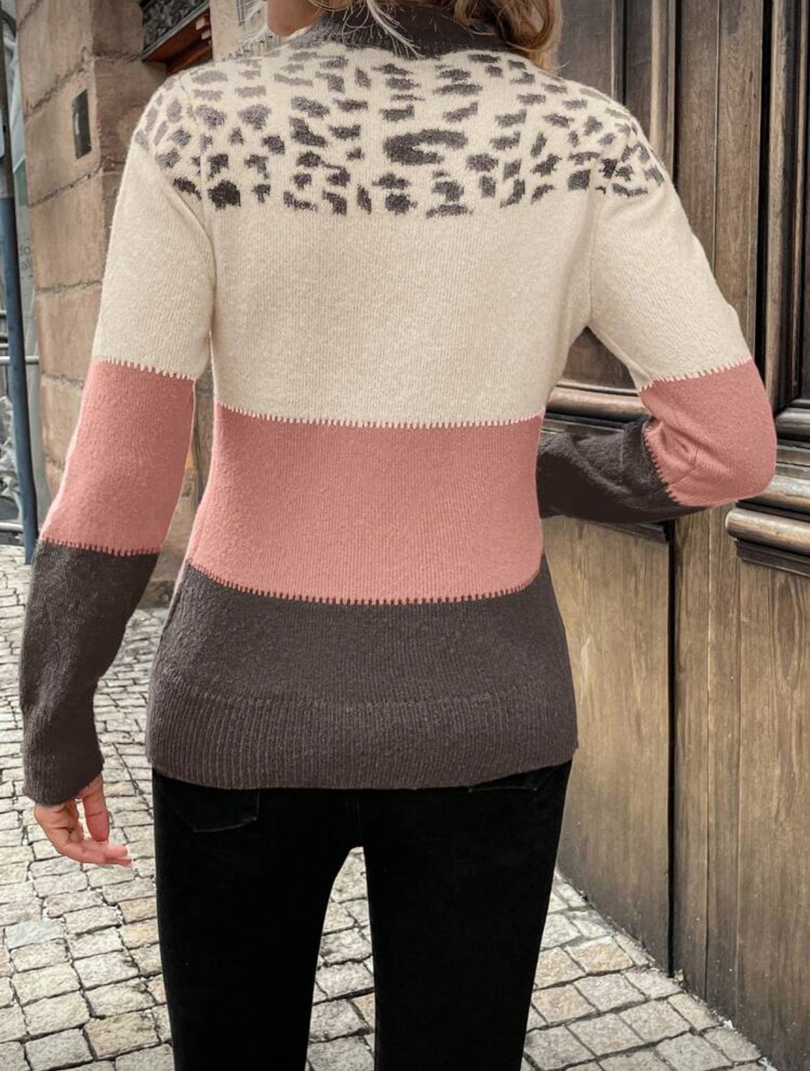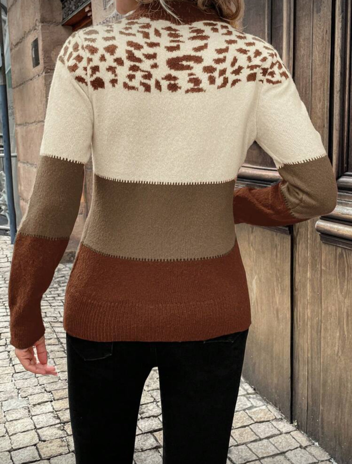 Pull à manches longues pour femme, imprimé léopard rouge, style casual de rue française.
