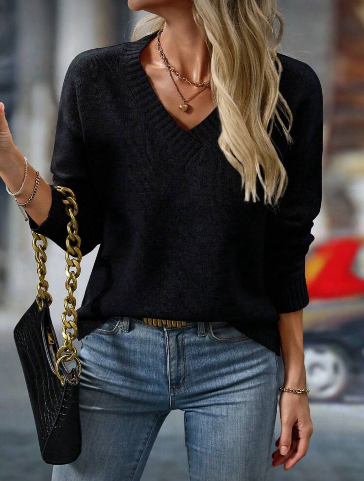 Pull ample à col V à manches longues