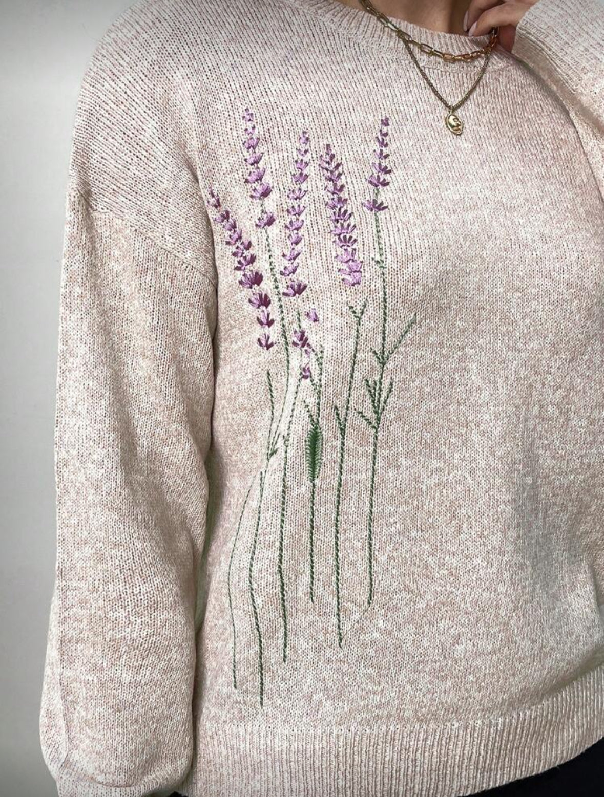 Pull col rond à manches longues, floral pour femmes, hauts à manches longues, pull tricoté.