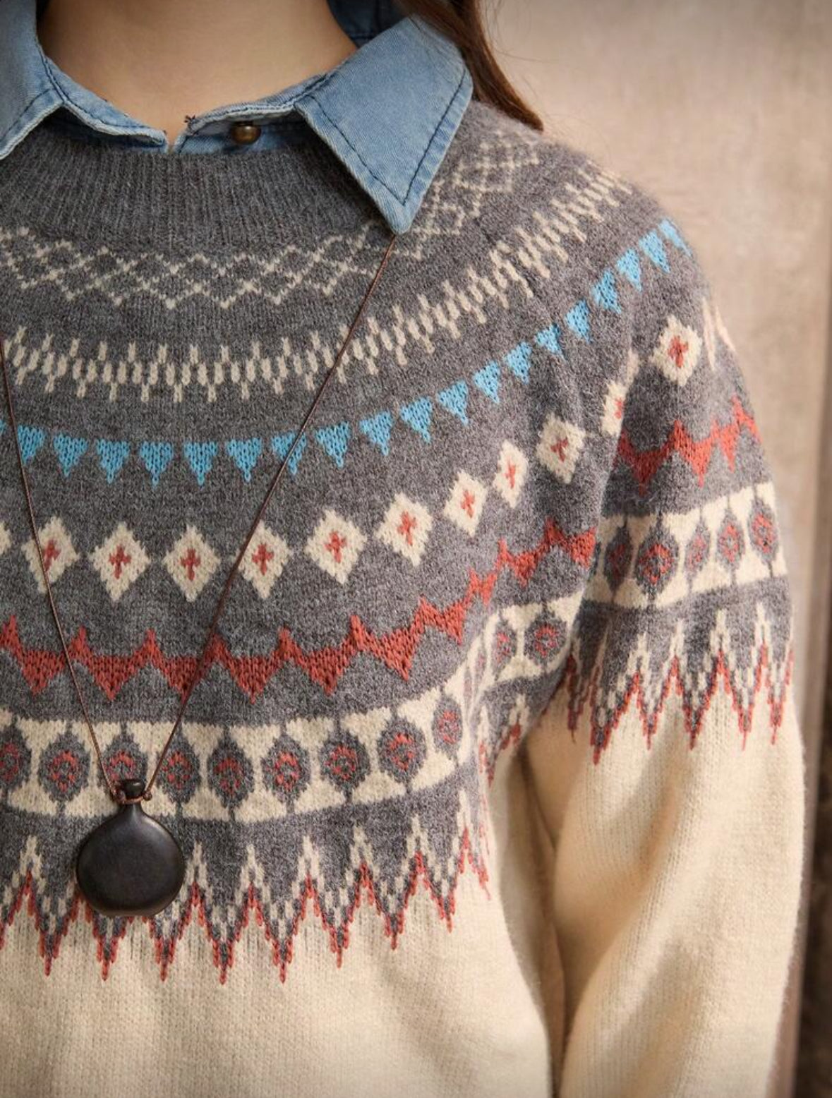 Pull à manches raglan à motif géométrique, hauts à manches longues pour l'automne/l'hiver.