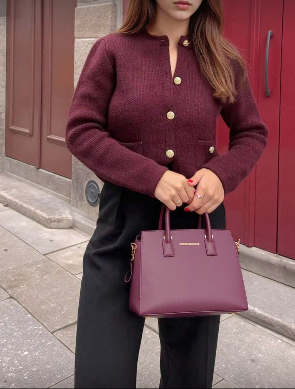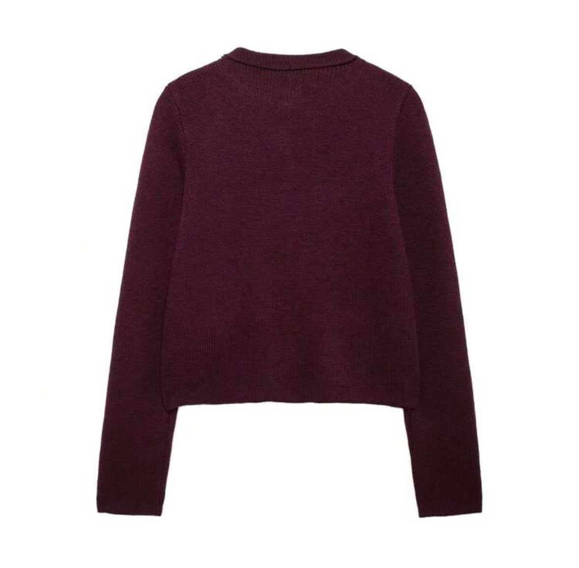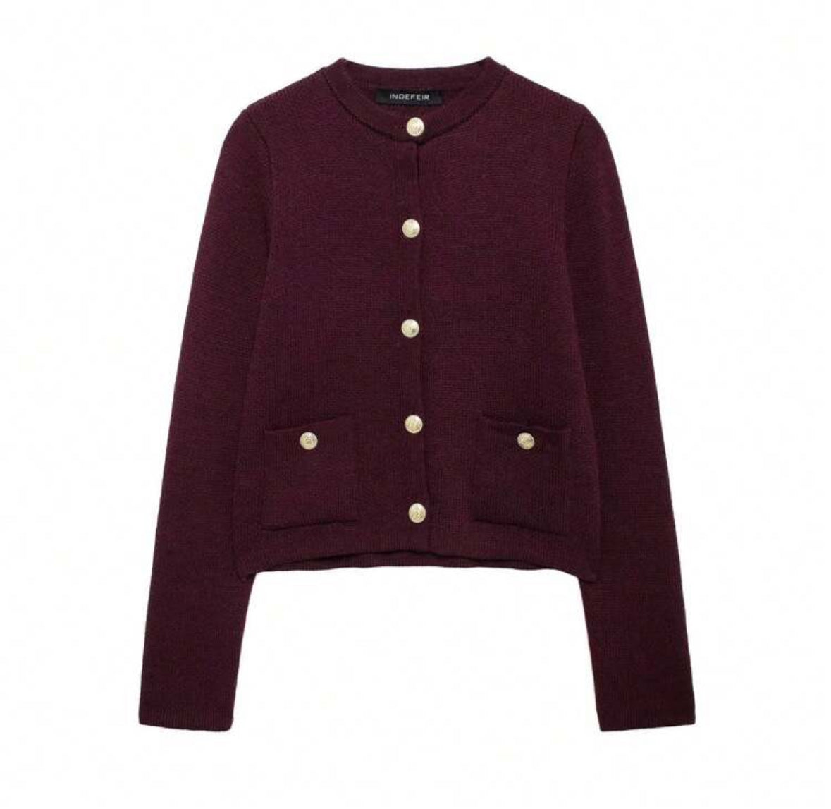 Pull tricoté avec accent de bouton doré pour l'automne/hiver, cardigan décontracté bordeaux.
