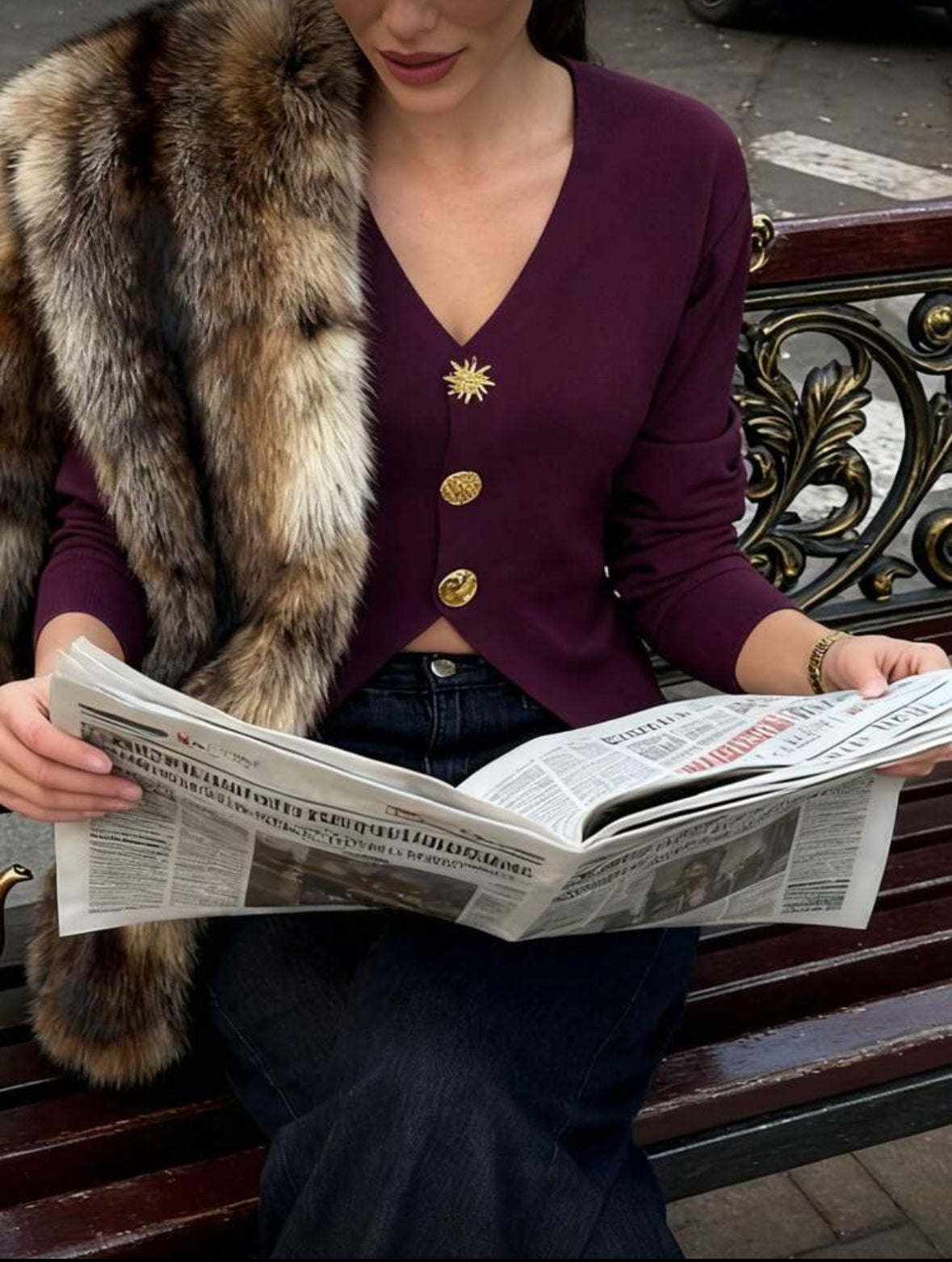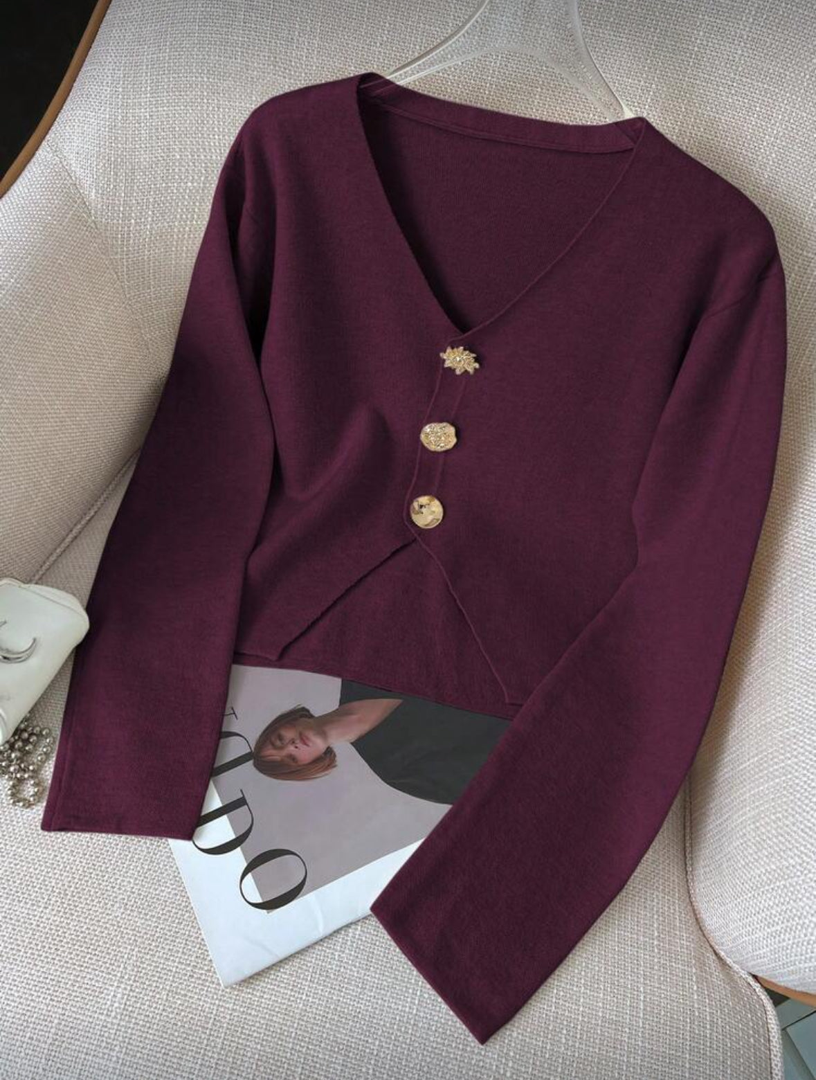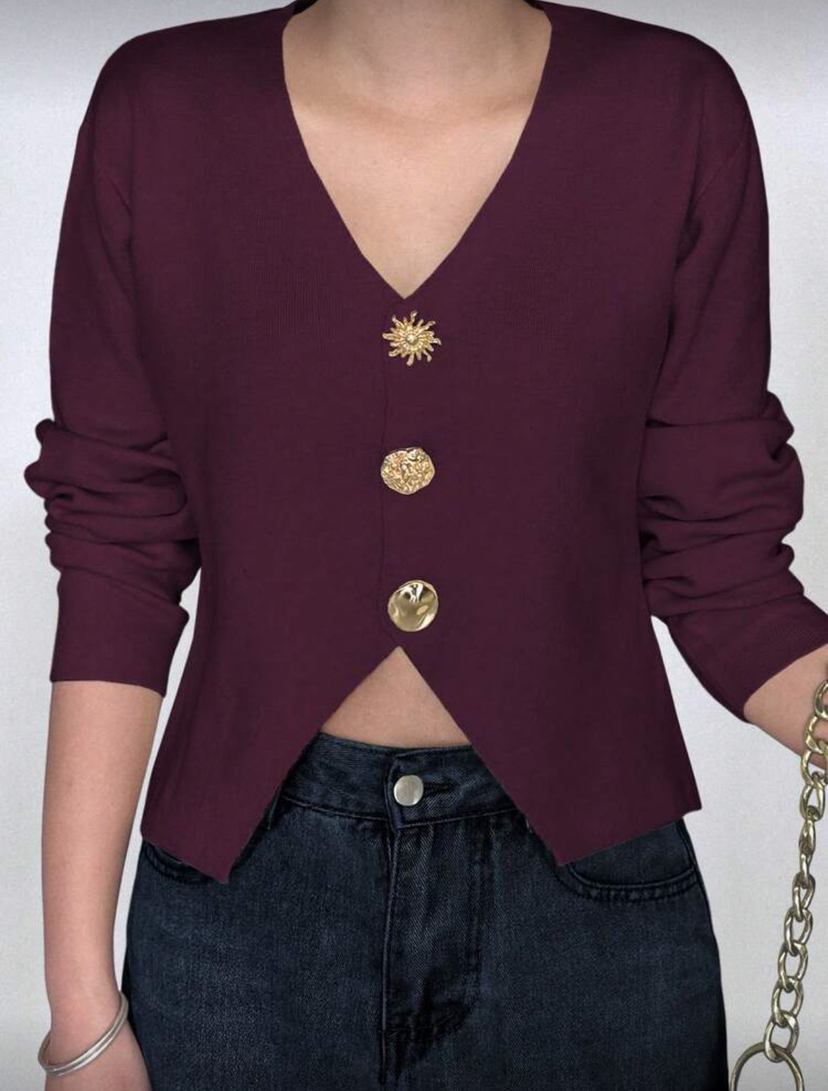 Top à manches longues avec boutons métalliques asymétriques et divers.
