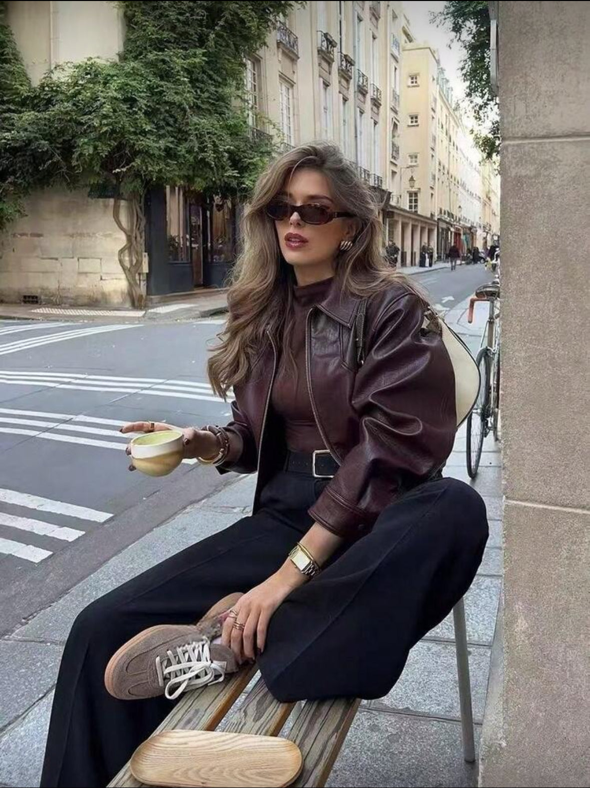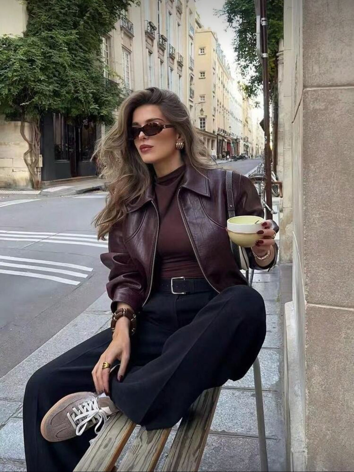 Veste courte à col cranté, style décontracté chic américain rétro, couleur rouge vin pour femmes.